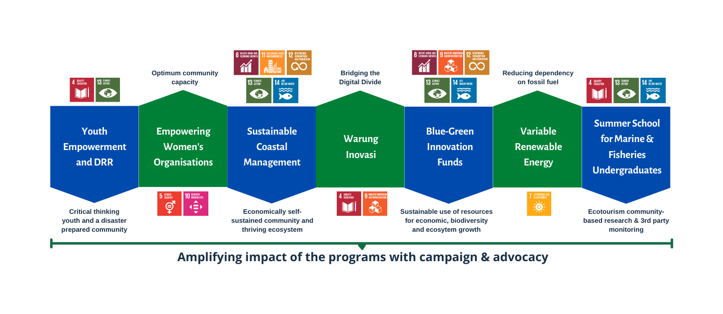 Since 1992, YLLI has mobilised youth to lead on improving their communities. Youth were a specific group in the public consultation process for improved management of the Sangihe Talaud island district in the early 2000’s and YLLI introduced the Summer School approach to field learning in Nanusa in 2004, bringing 30 undergraduates from the East of Indonesian state universities to live and work with the nine communities, mapping the status of their coastal resources each day and attending presentations and discussions each evening.